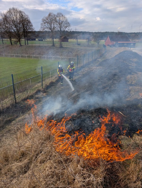 Am Dienstag den 10.03.2026 wurde die Feuerwehr Bingen zu einem brennenden Wall aus Gebüschen alarmiert. Ein Trupp unter Atemschutz konnte das Feuer zügig mittels Schnellangriff ablöschen. Wir kontrollierten anschließend den abgebrannten Bereich mit der Wärmebildkamera und übergaben die Einsatzstelle anschließend an die Polizei.