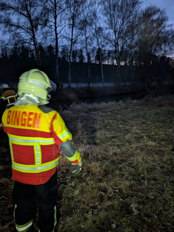 Die FFW Bingen wurde zu einem verletzten Schwan in die Hornsteiner Straße alarmiert. Ohne Unterstützung der Feuerwehr konnte sich der Schwan aus dem Gestrüpp befreien und danach unversehrt weiterschwimmen.