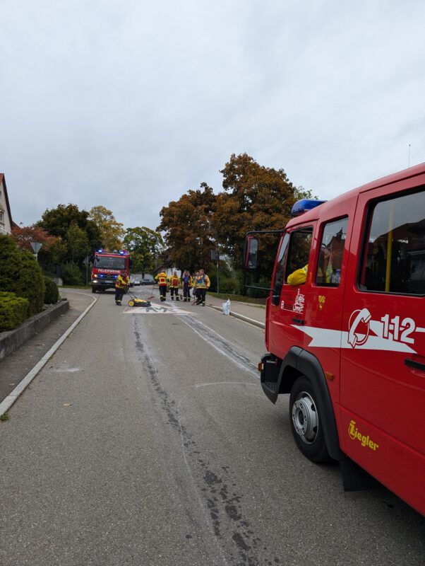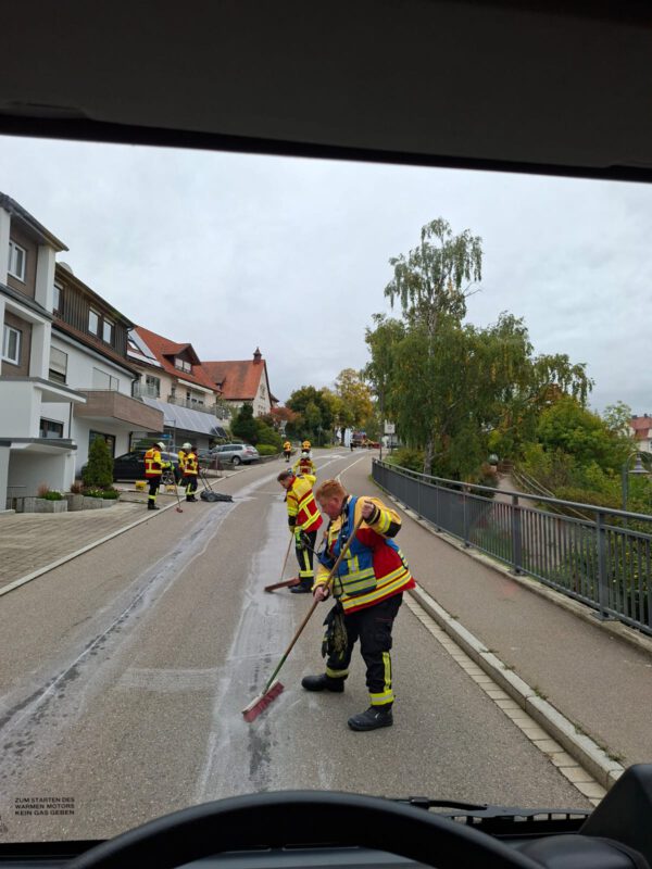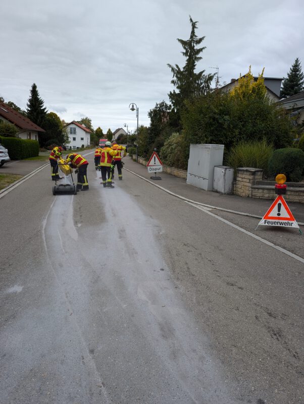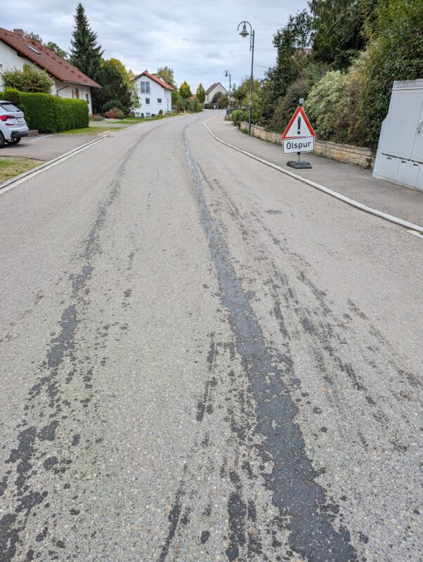 Durch einen technischen Defekt an einem Hydraulikbauteil entstand eine ca. 2 km lange Ölspur. Die Ölspur wurde abgestreut, aufgenommen und Warnschilder aufgestellt.